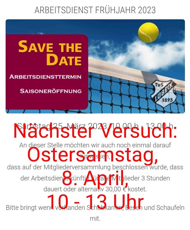 Moin, leider müssen wir auch heute den geplanten Arbeitsdienst aufgrund des Wetters absagen. Nächster Termin ist dann der Ostersamstag.