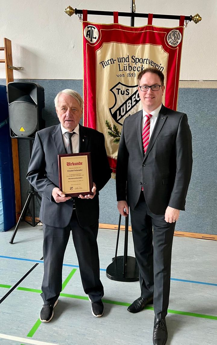 Die Tennisabteilung gratuliert Friedel Schrader und bedankt sich für seinen unermüdlichen Einsatz für den Tennissport beim TuS.
