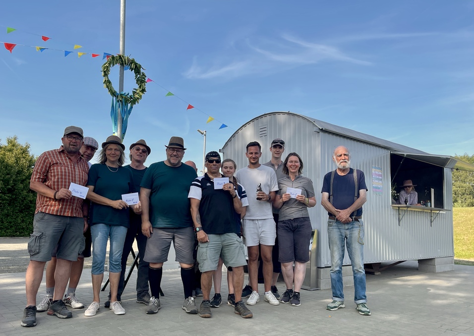 Zum Empfang der 60 Aktiven war das Boulodrome mit bunten Wimpeln und frischem Grün geschmückt. Höchst willkommen die Getränke im Bauwagen und in der Mittagspause die Original-Hotdogs wie beim „schwedischen Elch“. Fleißige Helferinnen haben die Gäste bewirtet. Ganz besonders geschätzt wurden in Spielpausen die Schattenplätze in den aufgestellten Zelten. Die Stimmung war entspannt und sportlich ambitioniert. Auf dem Siegerpodium landeten auf den ersten Plätzen Gäste-Teams. Die TuSler wissen eben, wozu Gastfreundschaft verpflichtet. Das Niveau der Spiele und die Fairness waren so hervorragend, dass auch bei den unterlegenen Teams die gute Stimmung nicht gelitten hat. Die vielen freundlichen Fotos belegen es ganz klar. Ganz offensichtlich herrschte allgemein eine große Zufriedenheit, was ein Team so ausdrückte: „Können wir uns für 2026 bereits wieder anmelden!“ Offensichtlich hat sich die Mühe gelohnt. Was will man als Veranstalter mehr …