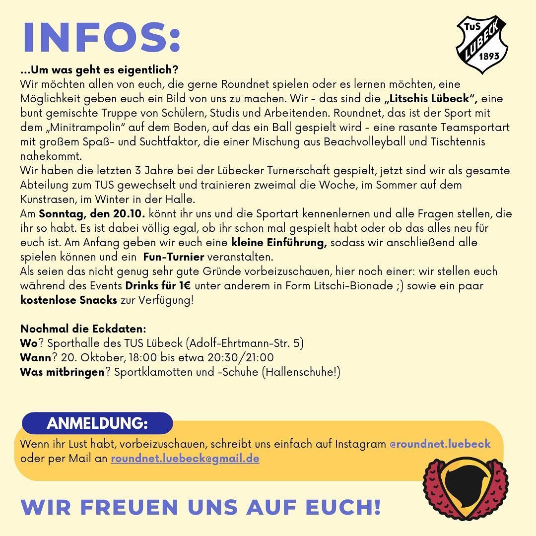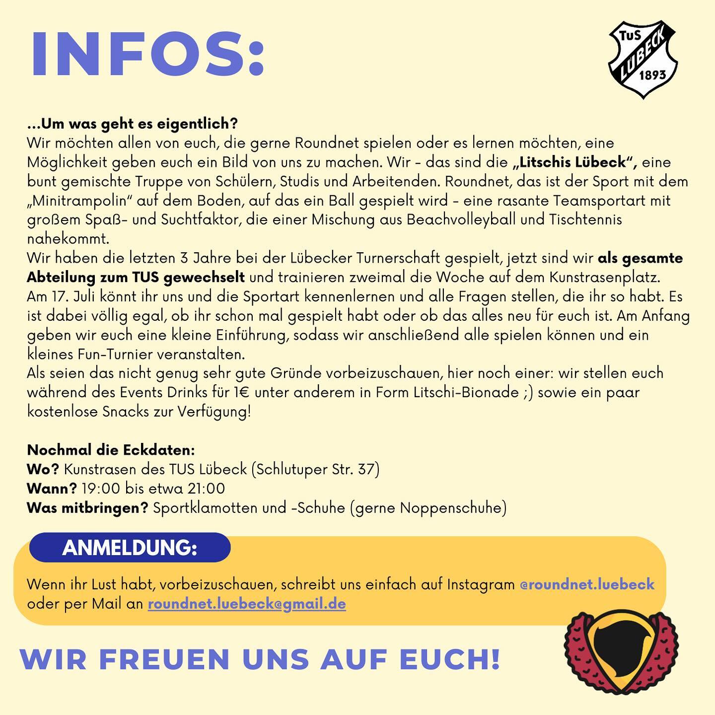 Ab sofort sind wir Litschis als Abteilung Roundnet beim TuS Lübeck aktiv. 🤝